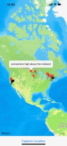 I started simply. The app keeps track of your precise space-time (via GPS) and provides one button to, anonymously, “place” a transient on a map. All of your transients then appear on map, where you placed them. You can click on a marker to see the data placed there.