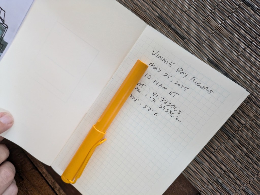 On May 25, 2025, I traveled to Providence, RI to meet with artist Vinnie Ray Fugere. He had agreed to collaborate on the first-ever in-person artist notarization—a live effort to capture, measure, and document the creative process as a way to prove the humanity of the artist and, by extension, confirm that the resulting artwork was made by a human being, not a machine.